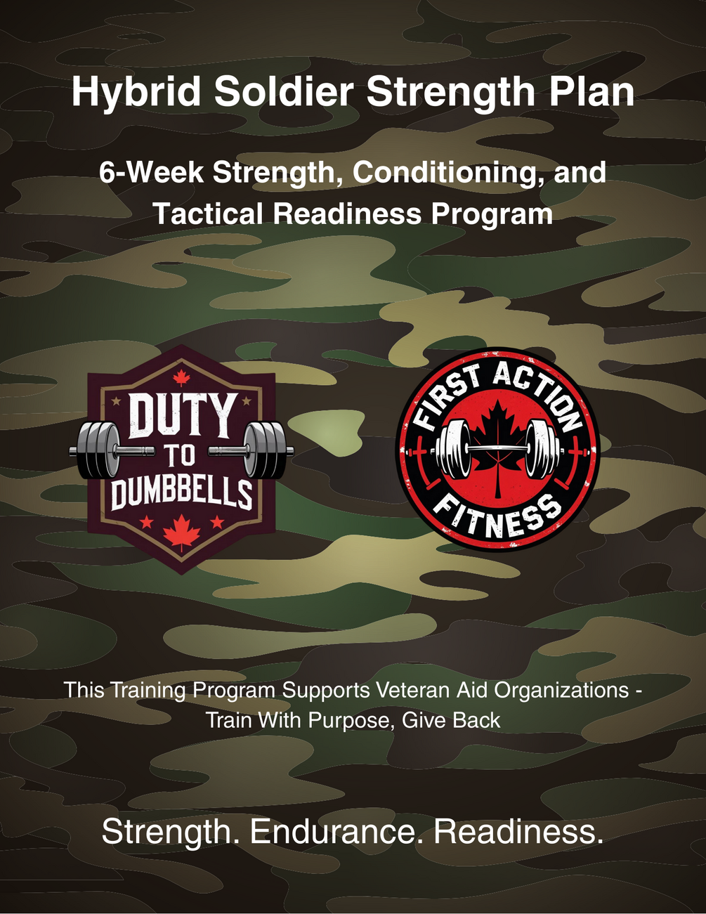 6-Week Progressive Program (PDF format) Gym-based barbell strength training (squat, bench, deadlift, press) Tactical finishers for conditioning, grit, and combat readiness Hybrid balance: hypertrophy + strength + endurance Cardio protocol (LISS + optional HIIT) Stretching, mobility, and recovery guidance Daily nutrition tips + example 1-day meal plan Supplement protocol for performance & recovery Mindset coaching for consistency & discipline Lifetime access to updates & improvements Veteran support included — a portion of each sale is donated